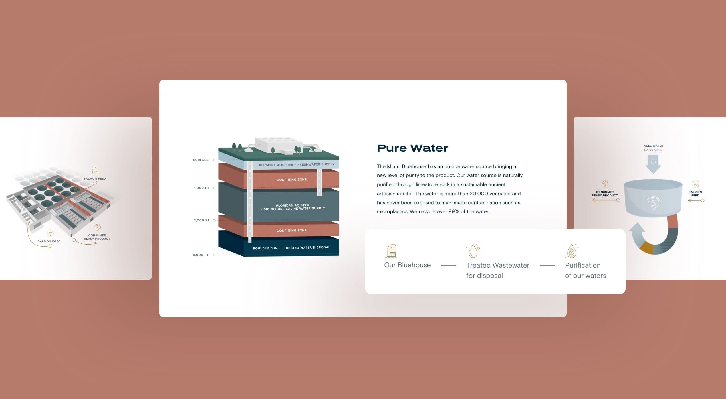 The innovation page of Atlantic Sapphire's website showcases their revolutionary approach to aquaculture. The design of this page incorporates an illustrated section that highlights key aspects of their innovative solution. From the unique water source and its purity, through the scalability of land-based fish farming, to the sophisticated technology that the company makes use of, the page effectively communicates Atlantic Sapphire's commitment to sustainable and advanced practices in the aquaculture industry.
