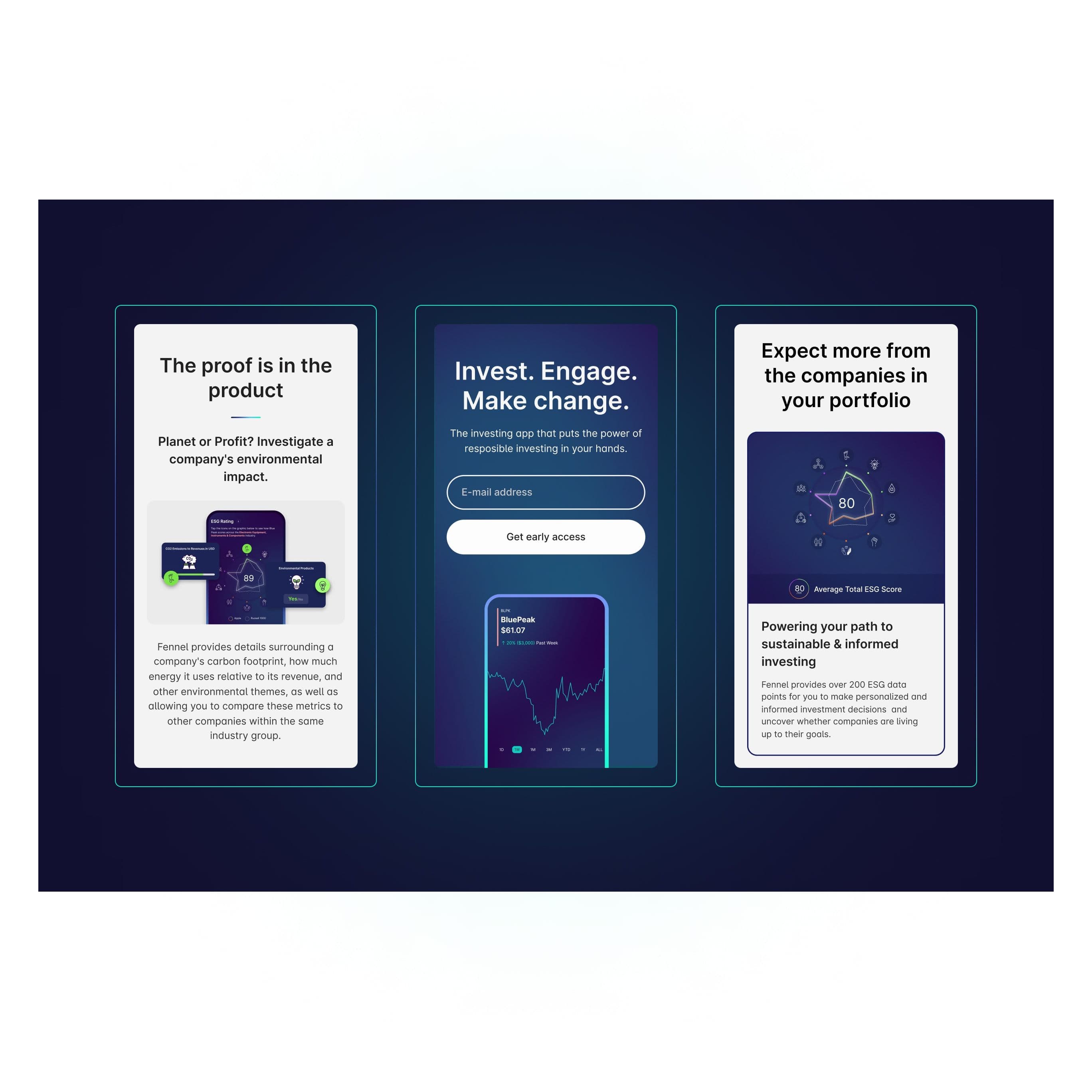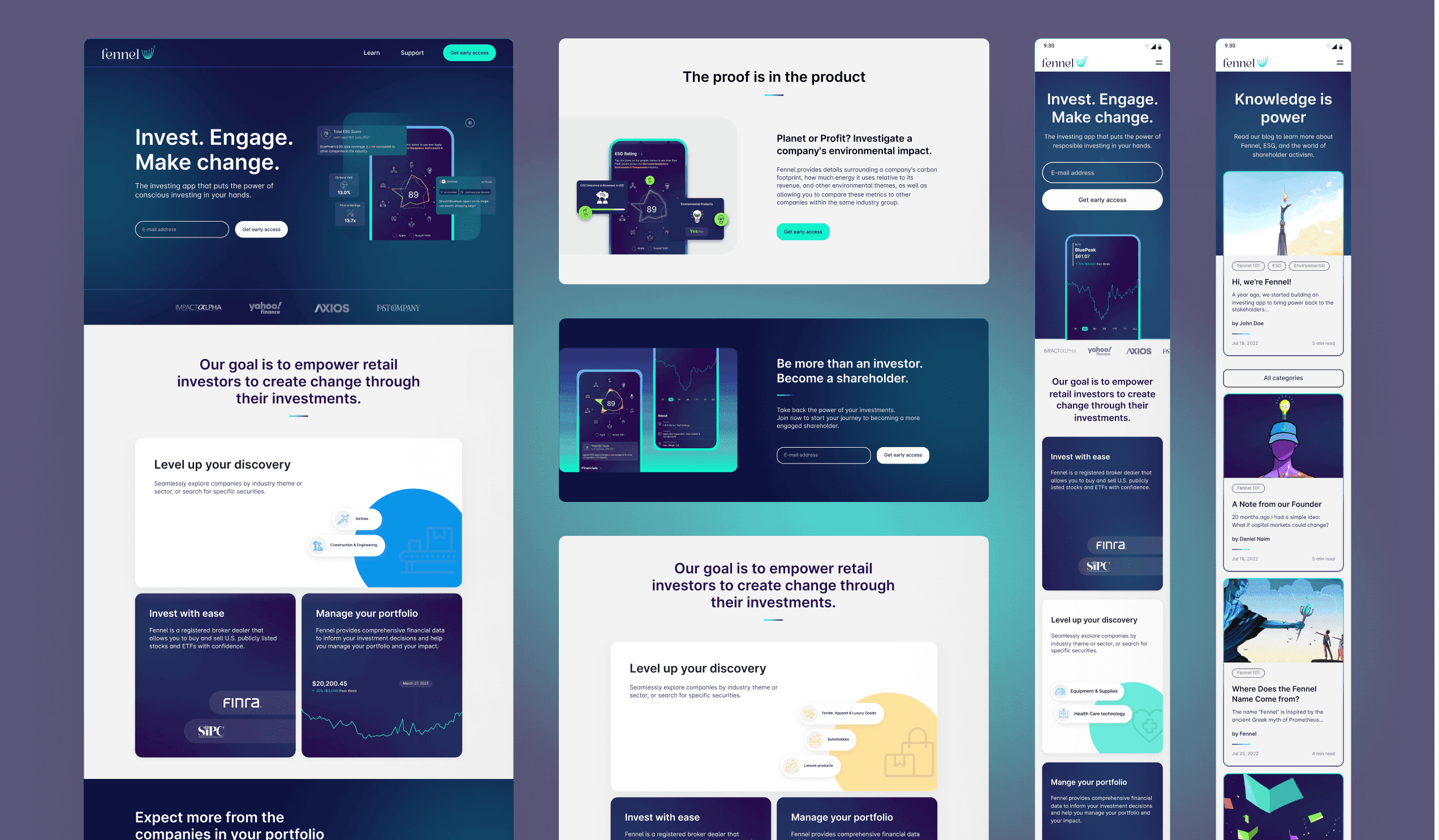 We designed the Learn page to provide concise, engaging content on sustainable investing. By simplifying complex information, we ensured users could quickly understand Fennel’s value and feel empowered to take action.