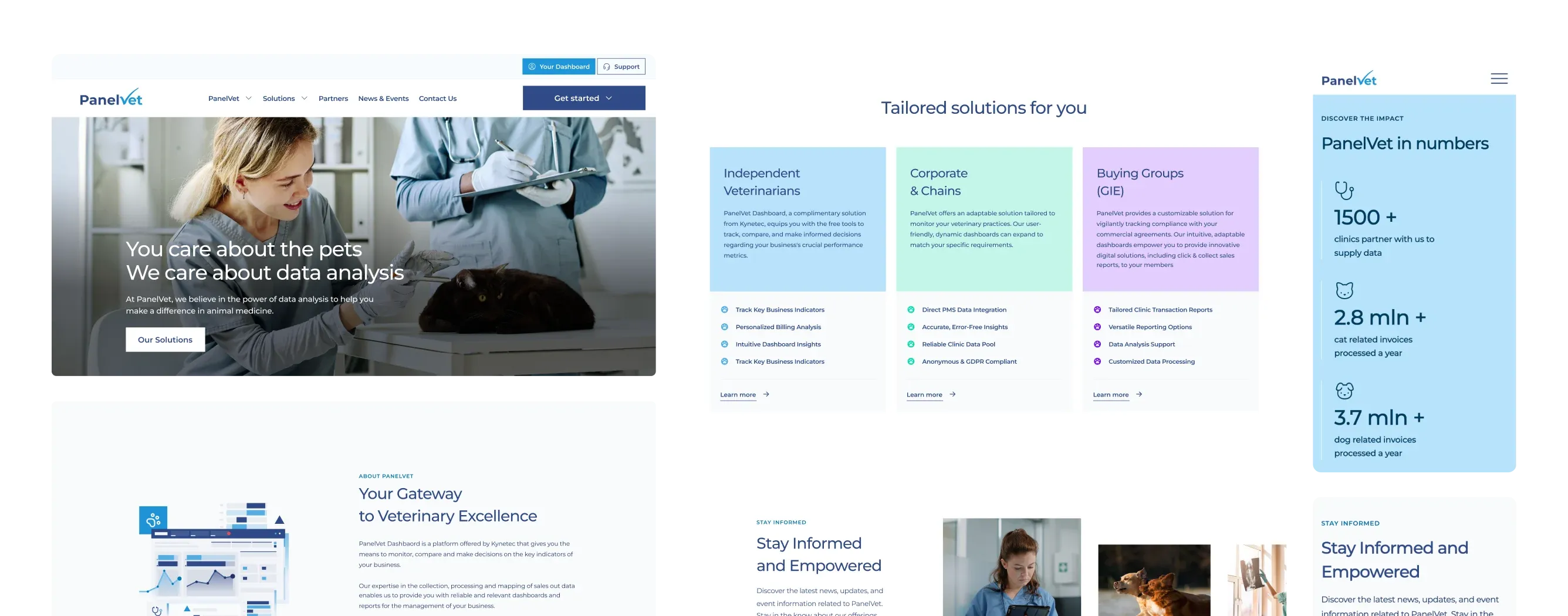 We developed a robust, professional HubSpot website for PanelVet entirely in-house. We based the UI on the design prepared for the main brand, Kynetec, ensuring consistency with their overall identity while adding unique elements tailored to PanelVet. The new platform features a clean, intuitive interface and seamless navigation that highlights PanelVet's diagnostic offerings, presenting complex data in a clear and accessible manner.