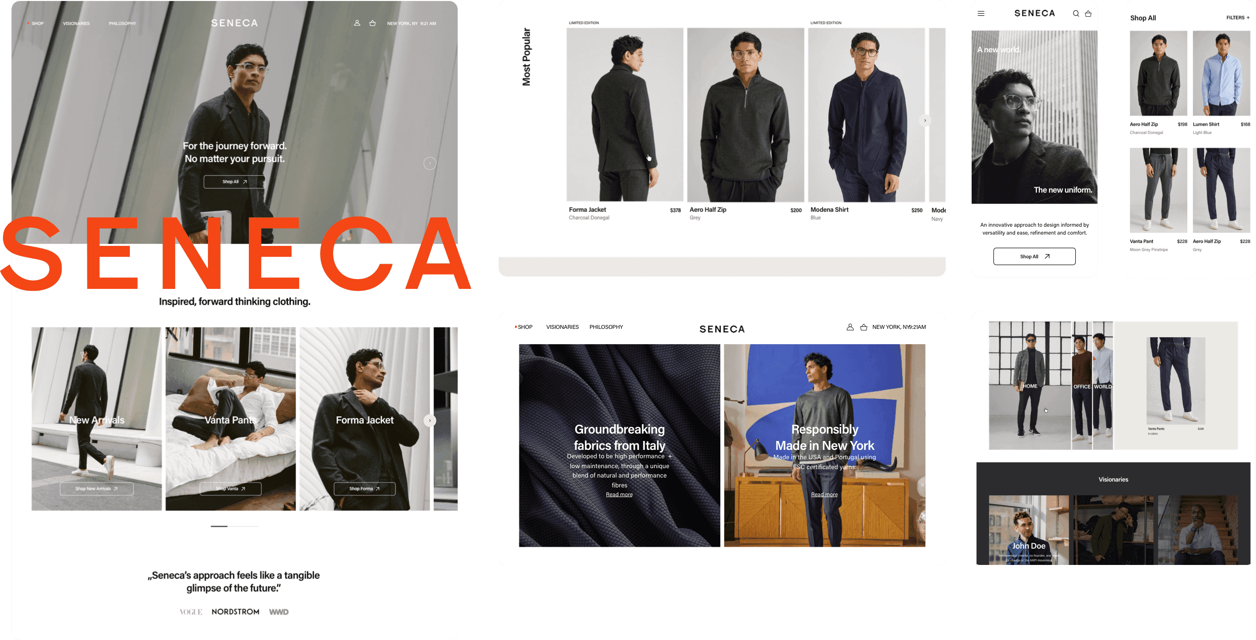Seneca, a high-end men's apparel brand based in NYC, enlisted Adchitects to undertake a significant redesign of their Shopify e-commerce platform. The goal was to boost conversions, attract more traffic, and provide their customers with a premium shopping experience.
