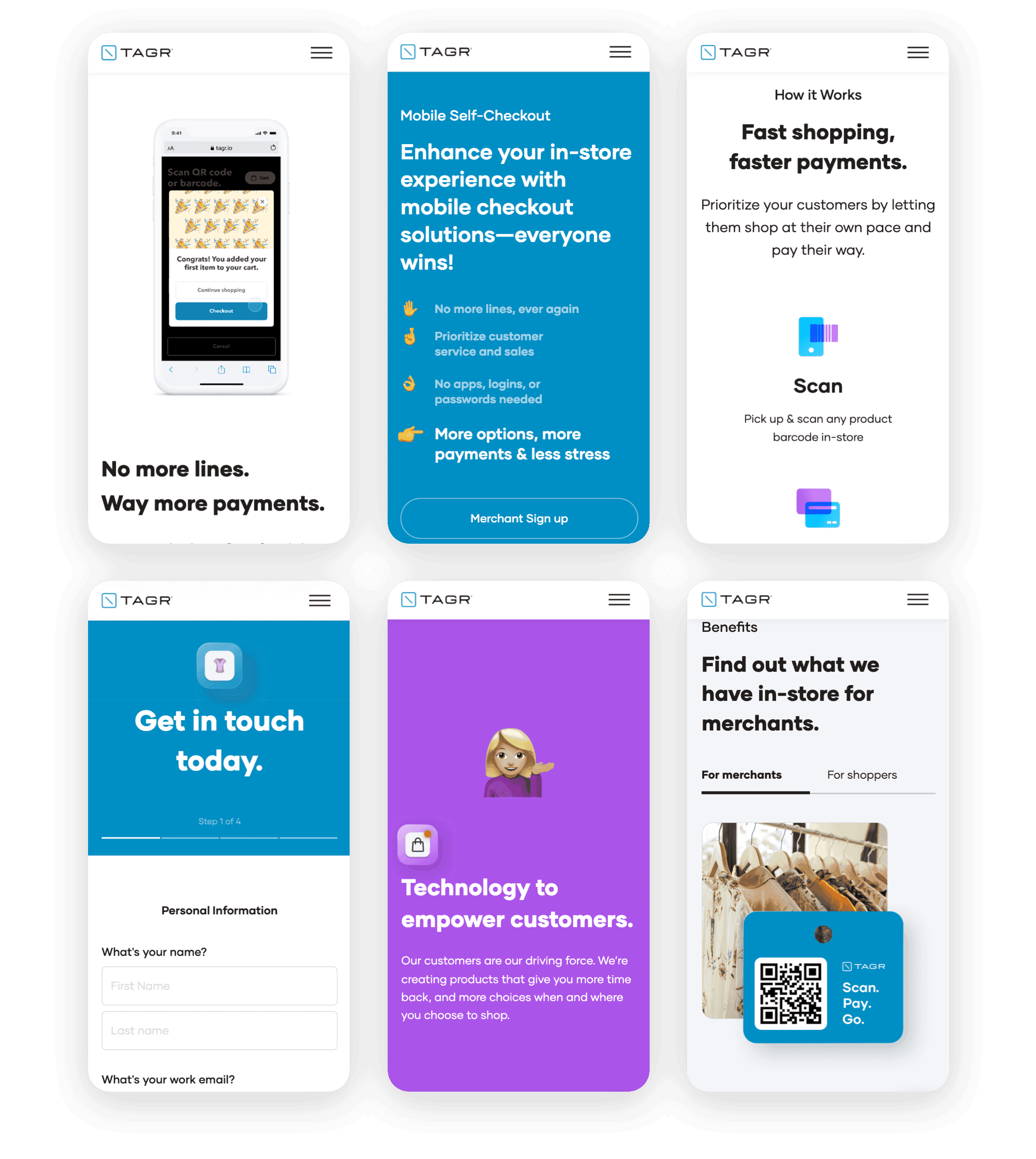 We developed a fresh website for TAGR that embodies trust, clarity, and confidence, striking a perfect balance between professionalism and joyful optimism. It reinforces TAGR's reputation as a dependable and innovative leader in the mobile self-checkout sector, showcasing the team's expertise and forward-thinking approach.