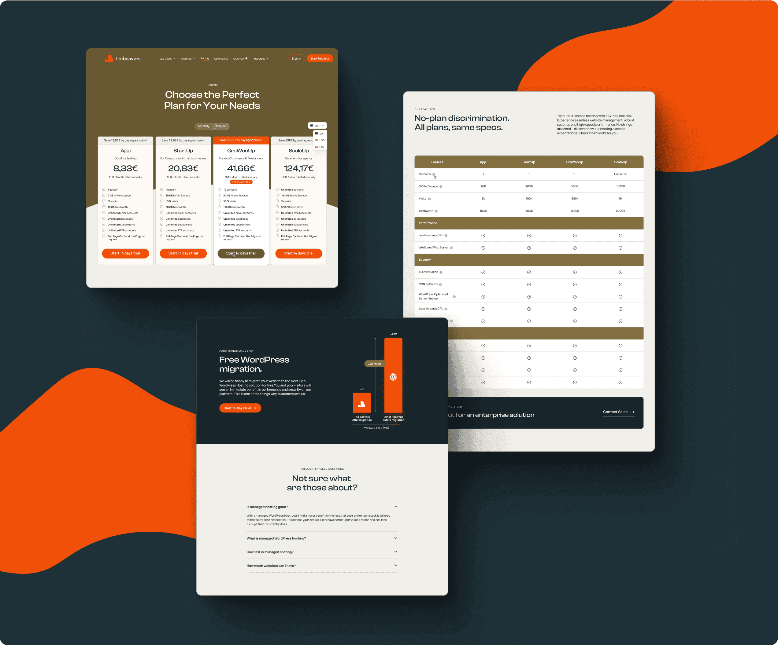 The Beavers, as a nascent brand entering the competitive hosting and website development space, faced the challenge of establishing a unique brand identity. With no pre-existing branding, they needed to craft a compelling visual identity that would resonate with their target audience and make them stand out from the crowd. Then, they had to use that brand identity to make their website design more memorable.